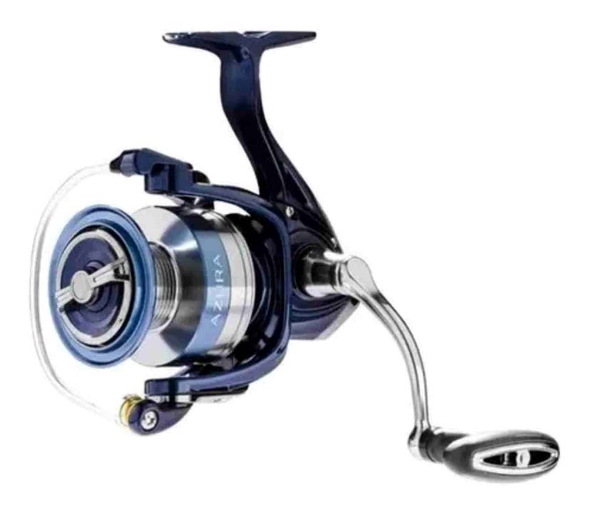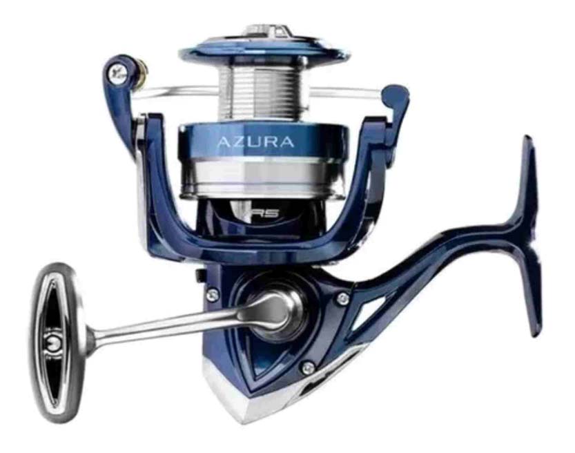 O novo Molinete Azura é um equipamento robusto e compacto, desenvolvido para um pescador mais exigente que preza po mais conforto à pescaria. Seu corpo e rotor são construídos em grafite, carretel e manivela em alumínio. Possui a manivela rosqueada diretamente ao corpo do molinete e pegador emborrachado super confortável. Conta com Drag com regulagem ponto a ponto e anel de vedação WRS (Water Resistance System). 6 Rolamentos sendo 5 de esferas + 1 de roletes, que proporciona um recolhimento extremamente balanceado e macio.